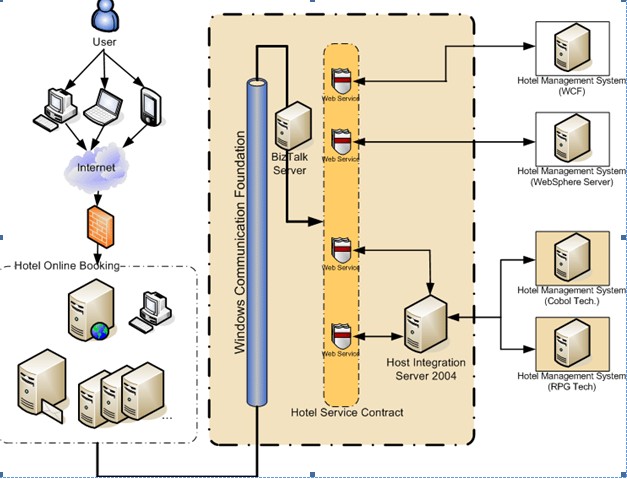 實現(xiàn)Web Service的方式可能是WCF、WebSphere,也可能通過Host Integration Server實現(xiàn)。這些Web Service都遵守一個共同的服務契約,并被定義為統(tǒng)一的服務接口。